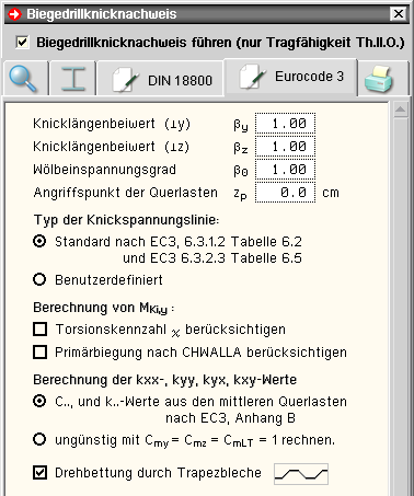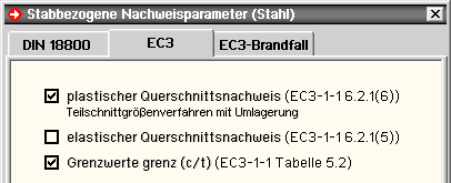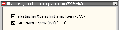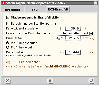 | Bei aktiviertem Brandschutznachweis werden auch die gruppenbezogenen Stabilitätsnachweise mit den reduzierten Festigkeiten implizit geführt. |