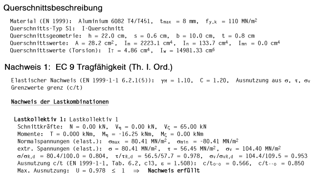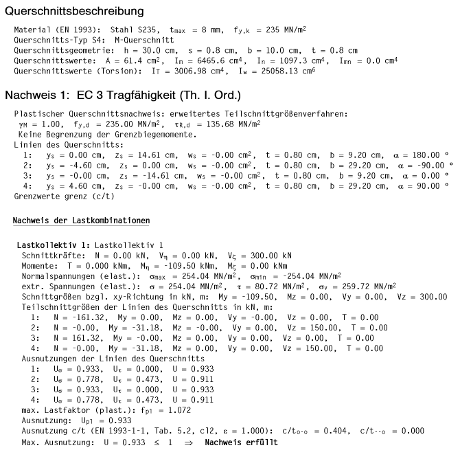 | plastischer Stahlnachweis (Teilschnittgrößenverfahren) für beliebige dünnwandige Querschnitte |