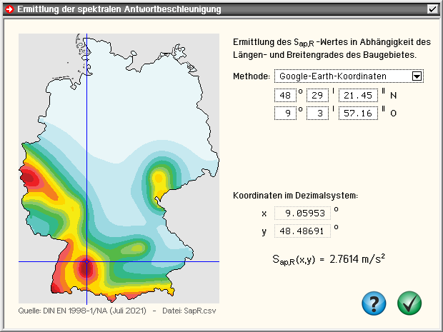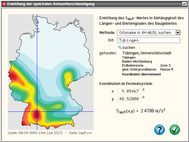 | automatische Ermittlung der spektralen Antwortbeschleunigung SaP,R |