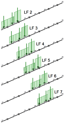 | Nach Bestätigen des Eigenschaftsblatts erscheinen die Lastbilder der Wanderlastenzüge in den einzelnen Lastfallfolien und können dort visuell kontrolliert werden. |