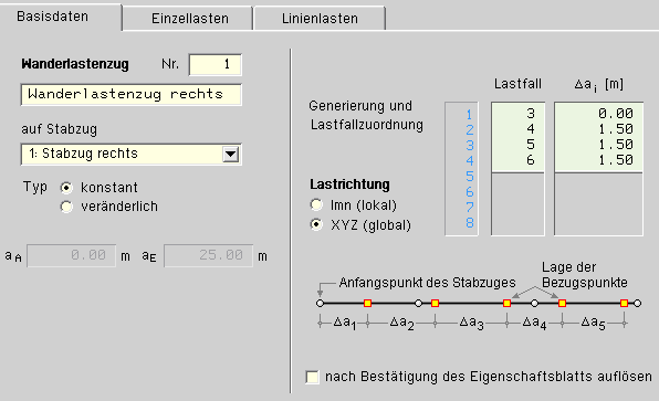 | Es können beliebig viele Wanderlastenzüge definiert werden. |