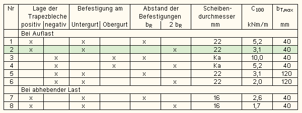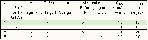 der Tabellenzeilen entspricht der Anzahl der Einzellasten. |