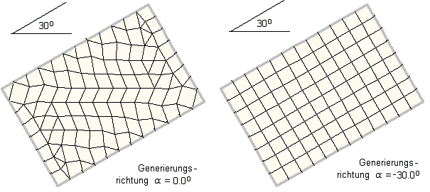 Die Generierung der FE-Netzes erfolgte einmal mit α = 0° (linke Seite) und mit α = -30.0° (rechte Seite). |
