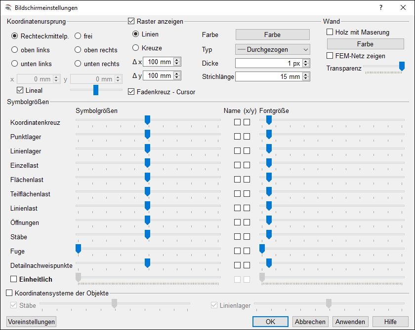 -BSPH, Brettsperrholz-Scheibe/Platte/Faltwerk, Bildschirmeinstellungen