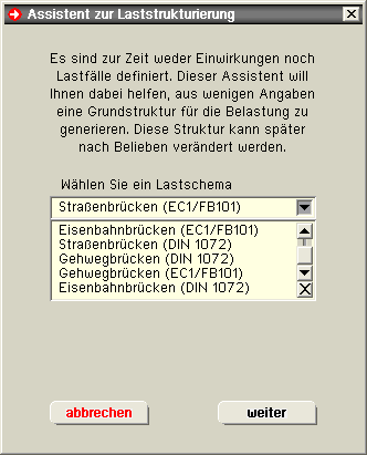 | Nach Auswahl des Lastschemas erscheint der eigentliche