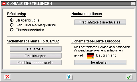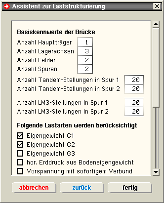 | Im Brückenbaumodul werden die Lastfaktoren für