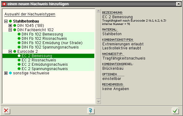 die Nachweise n. FB101/FB102 bzw. EC 2-2 allein über die Eigenschaftseinstellungen