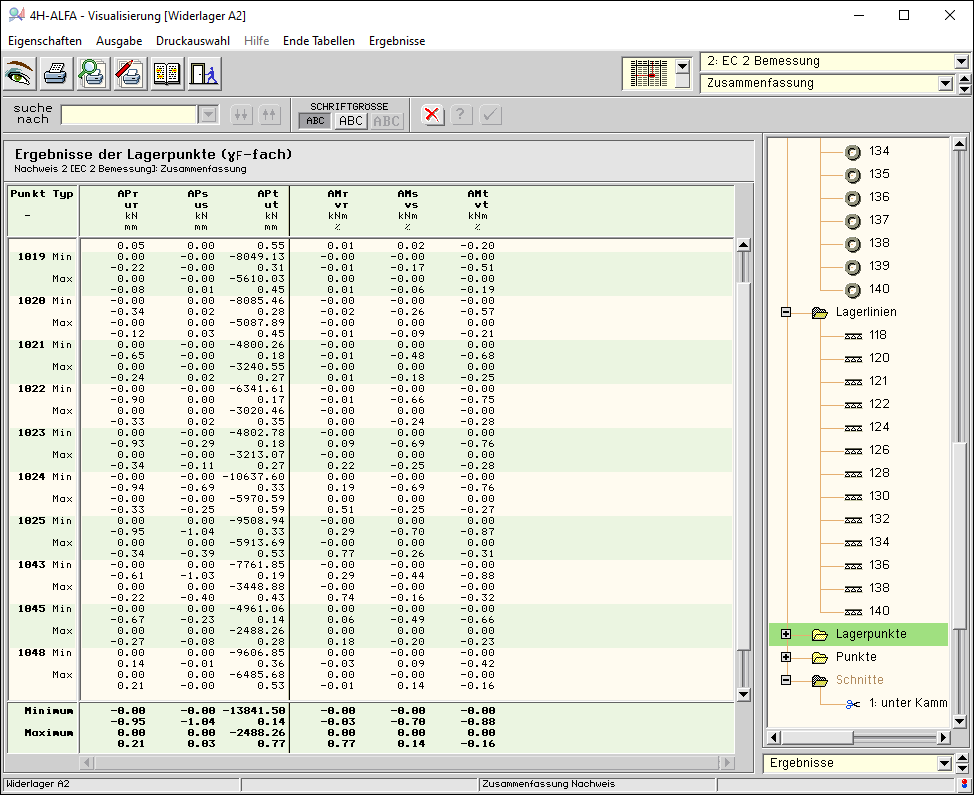 -ALFA3D, Faltwerke, Ergebnisvisualisierung - Tabellen