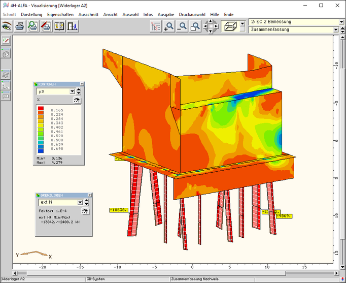Normalkräfte für die Pfahlgründung eines Widerlagers. |