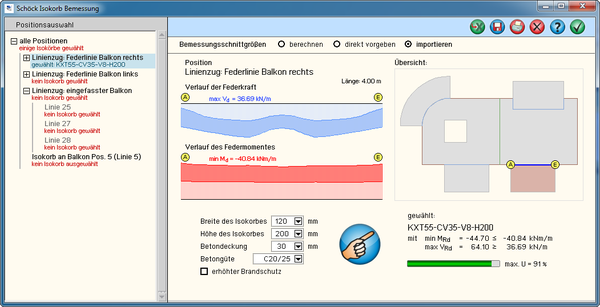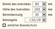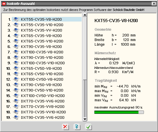 | Hierbei werden ausschließlich Isokörbe zur Auswahl angeboten, die den vorangehend beschriebenen Parametern und den Bemessungsschnittgrößen gerecht werden. |