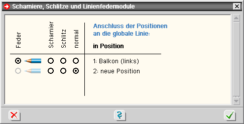 | In diesem Eigenschaftsblatt ist festzulegen, dass die Linien auf der Wetterseite (i.d.R. in der Balkonposition) Linienfedereigenschaften
