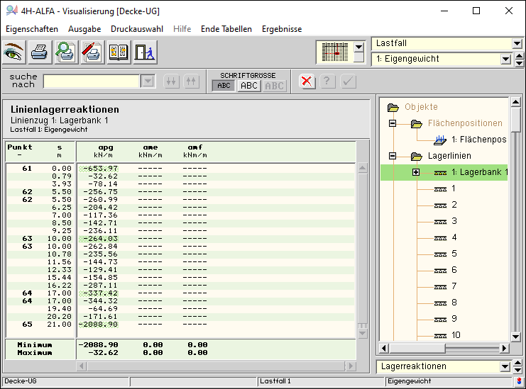 -ALFA, Platten / Scheiben, Ergebnisvisualisierung - Tabellen