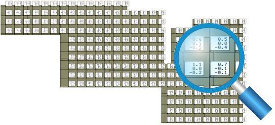 die gespeicherten Schnitte durch Flächenpositionen in einer