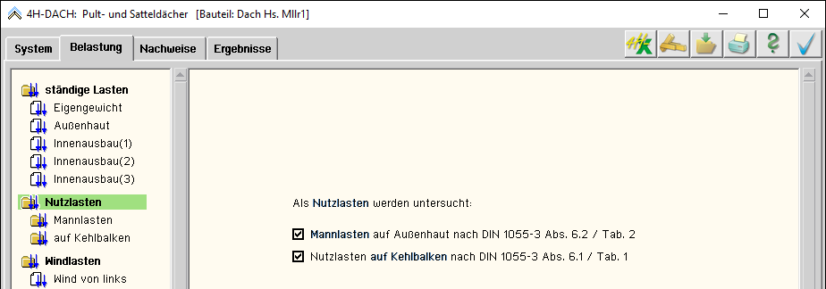 -DACH, Pult- / Satteldach, Belastung - Nutzlasten