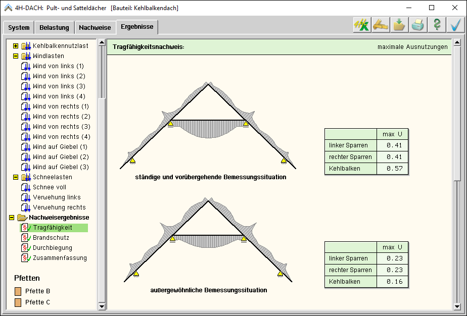 -DACH, Pult- / Satteldach, Nachweisergebnisse - Tragfähigkeitsnachweis