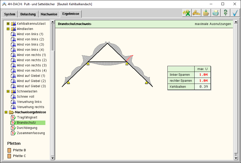 -DACH, Pult- / Satteldach, Nachweisergebnisse - Brandschutznachweis