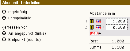 Maße der Teilquerschnitte und ggf. die Achsabstände der Träger in mm eingegeben. |