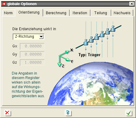 zu können, kann die Richtung der Eigengewichtslasten vom Standard