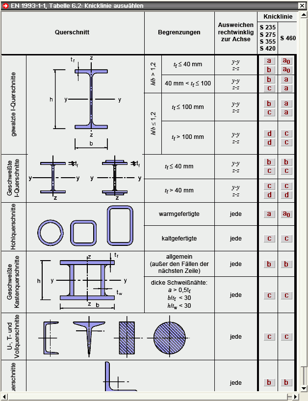 | Je nach Norm werden dann die entsprechenden Nachweisoptionen