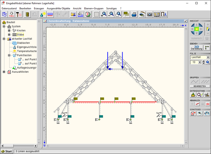 Wenn mehrere Stäbe, die einen geraden Linienzug bilden, ausgewählt sind, kann eine veränderliche Last