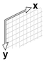 Rasterabstände mit Δx und Δy definiert