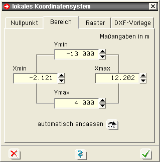 | Im Register Nullpunkt kann der Ursprung des ebenen x-y-Koordinatensystems