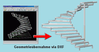 Geometrische Objekte können aus einer DXF-Datei mit Hilfe des DXF-Importfilters eingeladen werden.