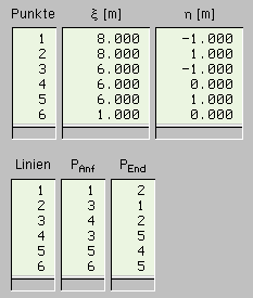In diesen Tabellen können die Knoten und Stäbe bearbeitet (inhaltlich geändert oder gelöscht) werden und neue Objekte können (durch Anhängen weiterer Zeilen) erzeugt werden.