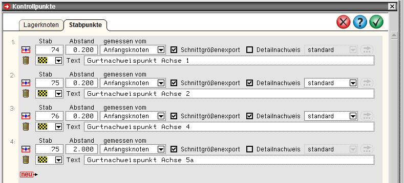 -NISI, Kontrollpunkte