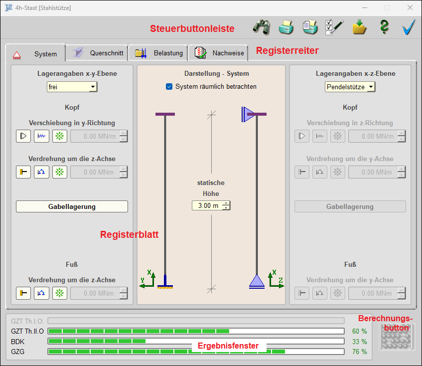 -STAST, Stahleinzelstütze, Eingabeoberfläche