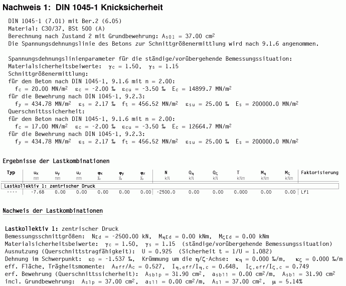 C30/37 und Längsbewehrung aus BSt 500 mit der Normalkraft