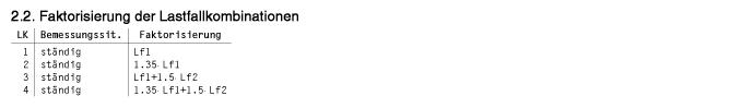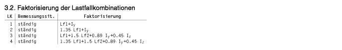 In der Tabelle mit der Faktorisierung der Lastfallkombinationen sind