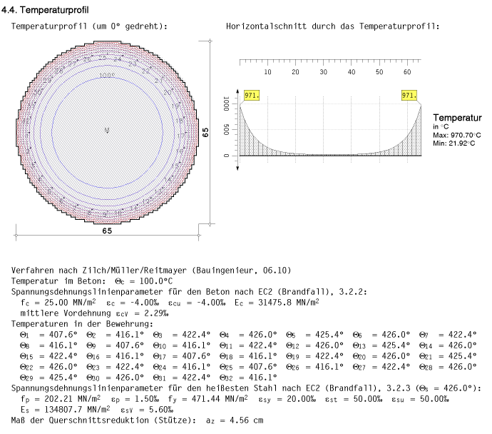 Vor den eigentlichen Ergebnissen wird das ermittelte Temperaturprofil mit den maßgebenden Temperaturen für