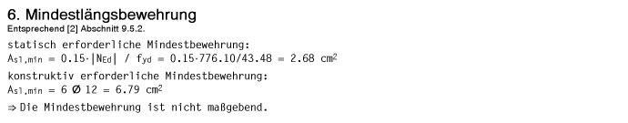 Mindestlängsbewehrung ausgewiesen und festgestellt, ob diese