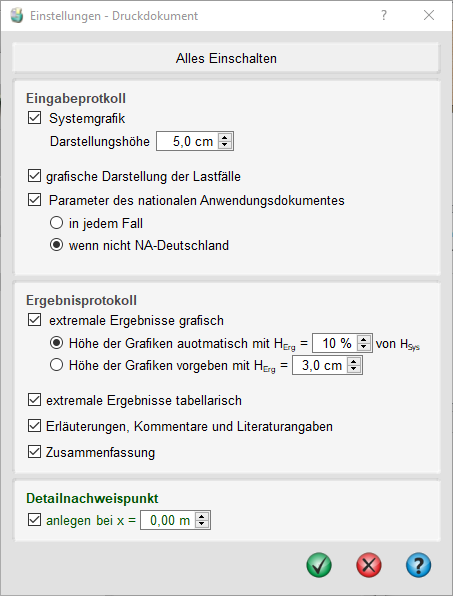 | Nachfolgend werden die Komponenten des vollständigen Druckdokuments mit allen Nachweisen gezeigt. |