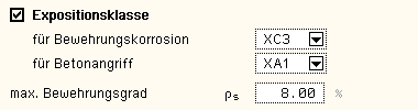 | Optional kann die Expositionsklasse des Bauteils berücksichtigt werden. |