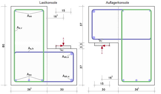 unterscheidet die Berechnungen für eine Lastkonsole und eine Auflagerkonsole. |