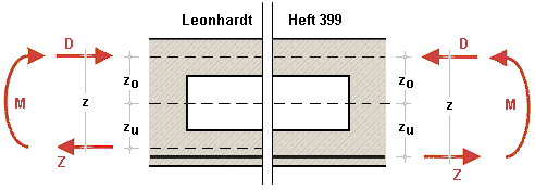 | Die Normalkraft im Druckgurt wirkt im Schwerpunkt,