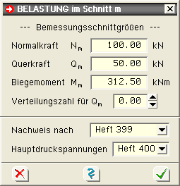 (Bemessungslasten = Gebrauchslasten) Nm, Qm,