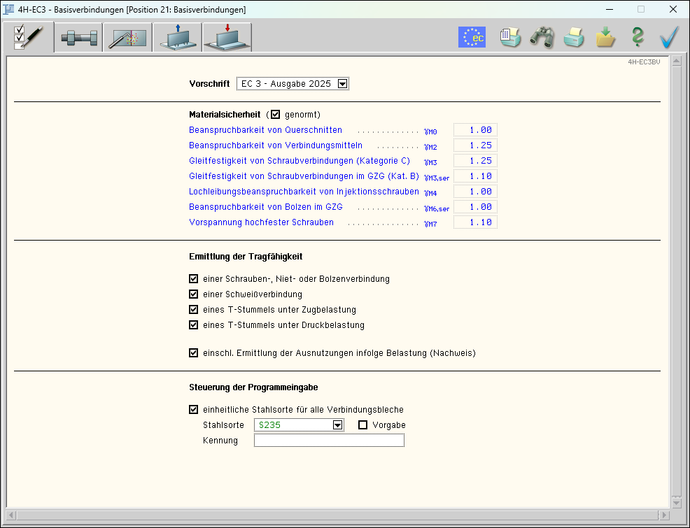 -EC3BV, Basisverbindungen, Eingabeoberfläche