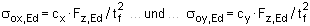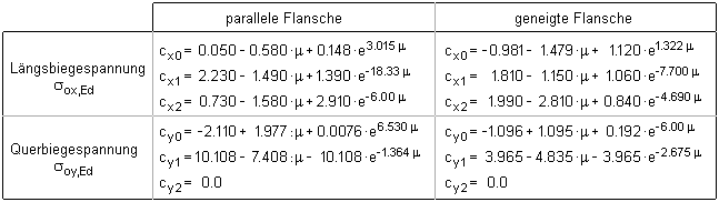 | Die Koeffizienten dürfen bestimmt werden zu (DIN EN 1993-6, Tab. 5.2; cxi und cyi sind positiv bei Zugspannungen an der Flanschunterseite) |