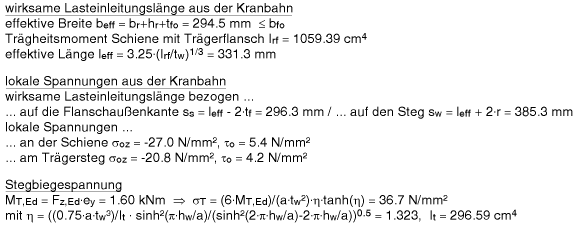 Beulens sind die lokalen Spannungen aus der Radlast der Kranbahn zu berechnen. |