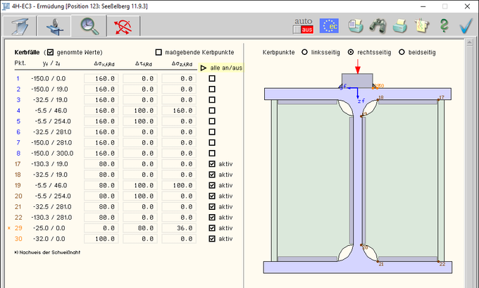 Ermüdungsnachweis, wird ein Doppel-T-Profil unter Errmüdungsbelastung