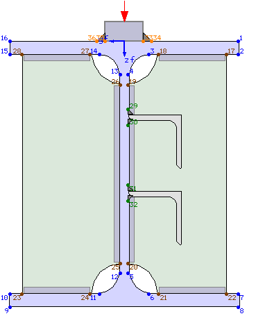 der Lasteinleitung) und (2 = äußere Flanschkante)