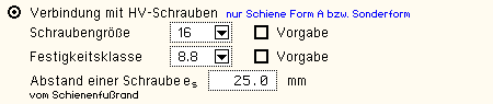 ist der Abstand der Schrauben vom seitlichen Rand des Schienenfußes anzugeben. |