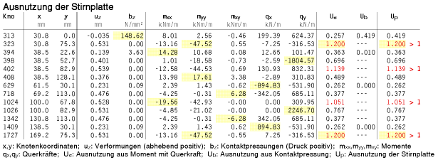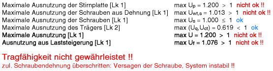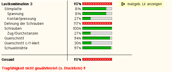 die Ergebnisse (Ausnutzungen) lastfallweise und detailliert