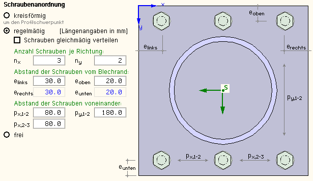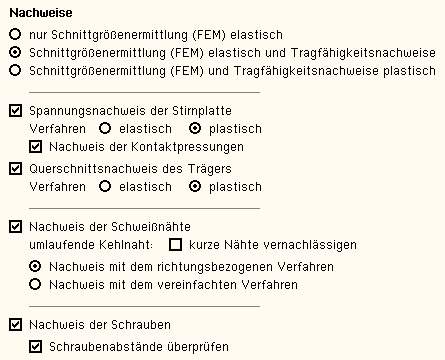 Stirnplatte und der Trägerquerschnitt festgelegt.