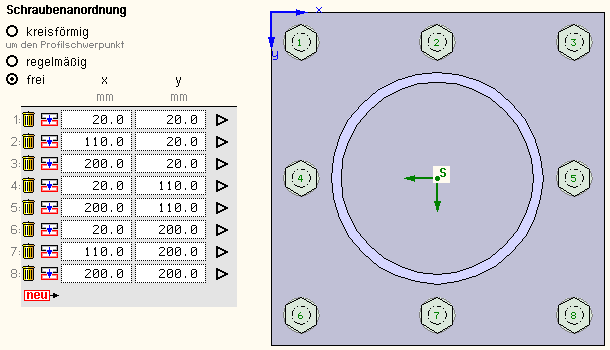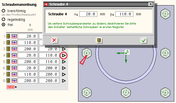 wird die Anordnung von Profil und Schrauben auf