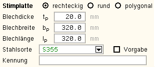 im Stahlquerschnitt benötigten Parameter werden