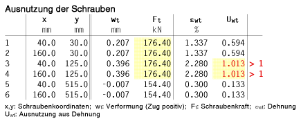 | Die Tragfähigkeit der Schraubenreihe 1 überschreitet 95% der